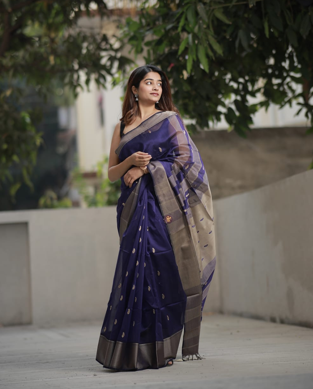 Dark Grey Kosa Maheshwari silk